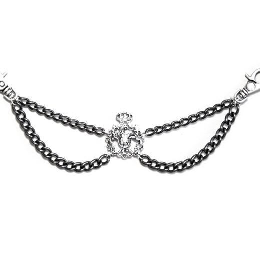 Charivari Kette, zweieihig für alle die ihr Charivari selbst zusammenbauen wollen, nach dem Motto DIY. Antik (dunkel) versilberte Gliederkette mit tollem Bayernwappen als Mittelstück und zwei kraftvollen massiven Karabinerhaken.