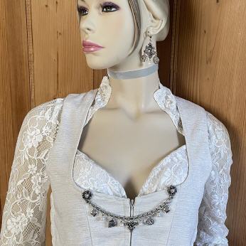 Das Clip Charivari ist besonders beliebt bei modernen Trachtenliebhaberinnen, die Wert auf hochwertige Details und einfache Handhabung legen. Es betont das Dekolleté, unterstreicht die feminine Silhouette und lässt sich flexibel an verschiedenen Stellen des Dirndls tragen.
