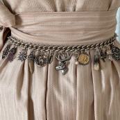 Mit dem Gürtel sitzt das Charivari perfekt am Dirndl. Beschreibung und Video, wie der Charivari Gürtel funktioniert weiter unten.