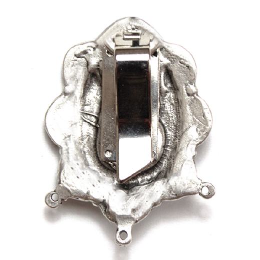 Steck Charivari ist ein besonderes Schmuckstück für die Dirndlschürze. An der Rückseite ist eine Klammer, mit der das Steck Charivari am Schürzenband der Dirndlschürze (auf der gegenüberliegenden Seite von der Dirndlschleife) befestigt wird.