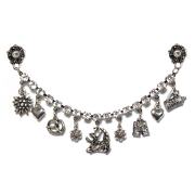 Mit der eleganten Brosche "Klara" ist Ihnen der Wow-Effekt garantiert. Das zeitlos schöne Schmuckstück ist mit filigranen Kettchen und einer Perle verziert. Die Brosche setzt Ihre Dirndlbluse, Ihr Dirndlmieder und Ihre Dirndlschürze stilvoll in Szene. Unaufdringliche Eleganz mit Glamour und auch ein besonders hübscher Brautschmuck.