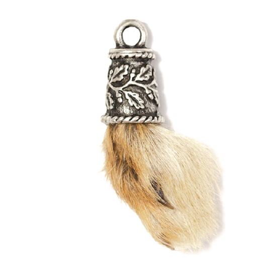 Eine Hasenkralle ((Glücksbringer) verleiht jedem Charivari eine besondere Ausstrahlung. Die Unikate werden von almresi in Bayern handgefasst.