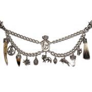 Typisch bayerisch ist das Charivari Ludwig mit einer hochwertig versilberten massiven Gliederkette und 7 Anhängern u.a. Gamsbart, Wappen, Edelweiß, Ludwig, Rehbock & Maßkrug.