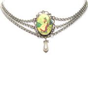 Das samtweiche elastisches Kropfband ist mit einem entzückenden Blümchenmotiv verziert und kann mittig oder seitlich getragen werden.