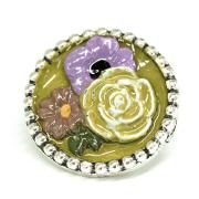 Auffallend schöner Knopf mit Blumenmotiv in Altsilber.